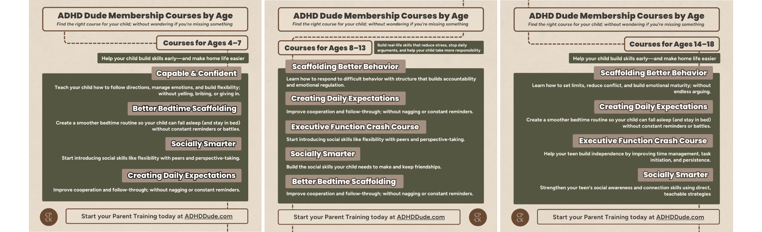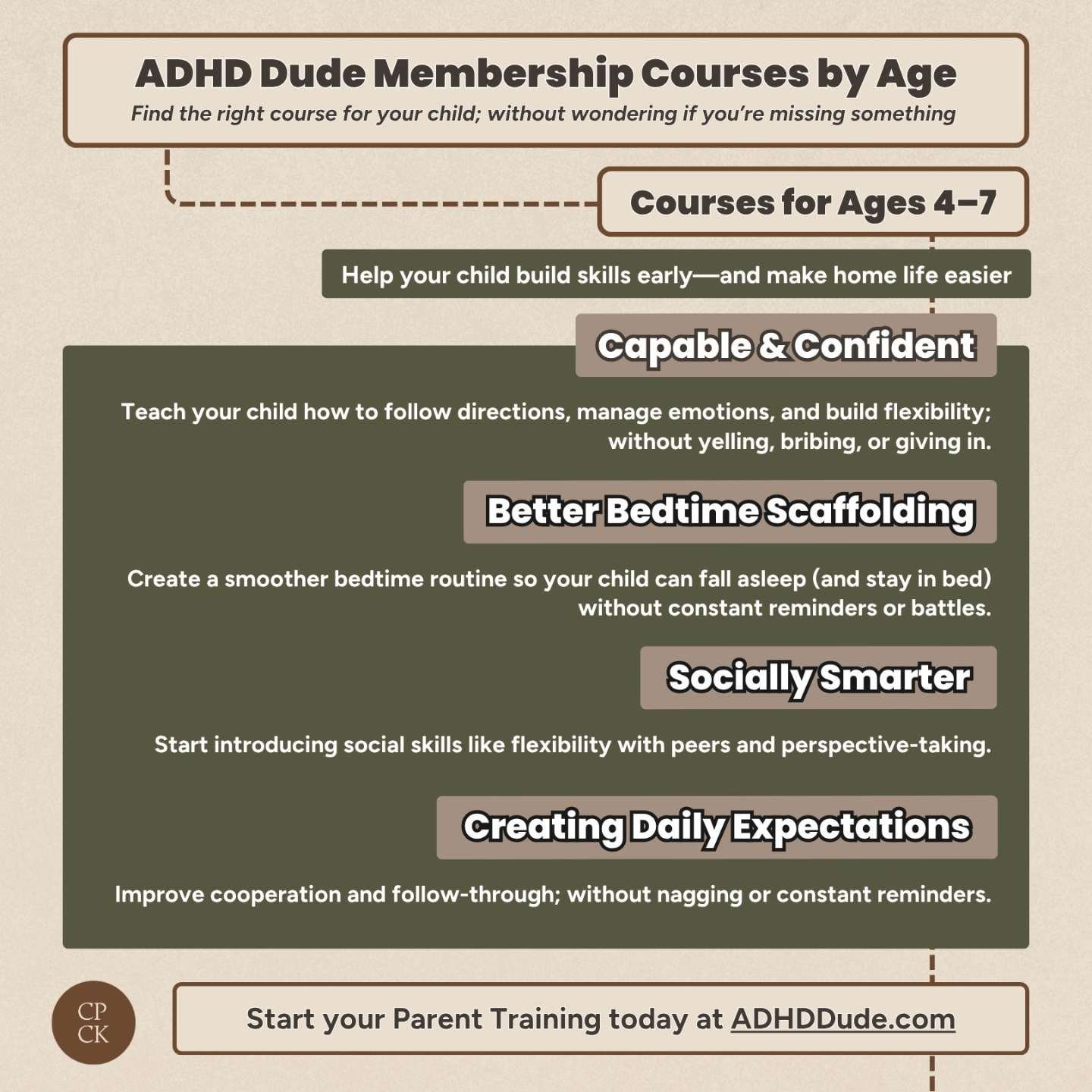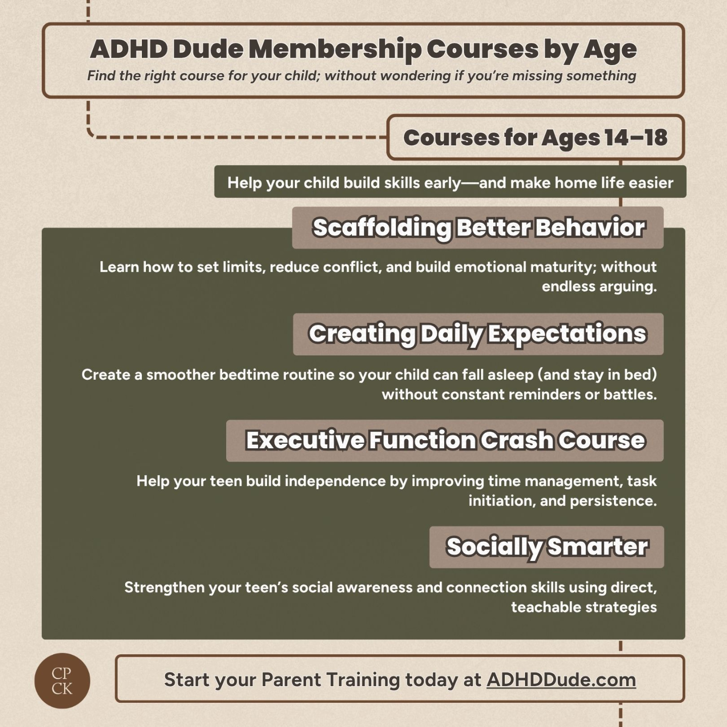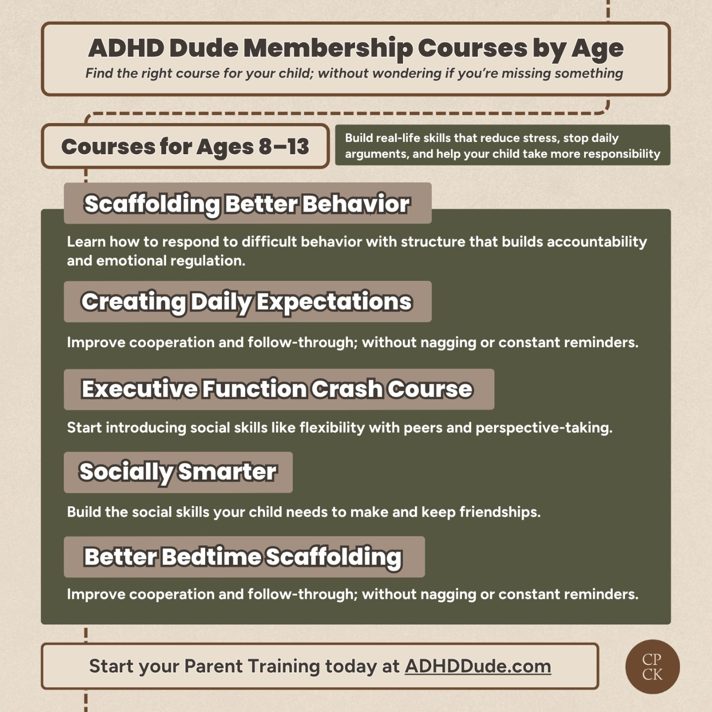 Each course builds on the ADHD Dude Method, giving you clear, practical strategies for improving behavior, strengthening social skills, and improving executive function.