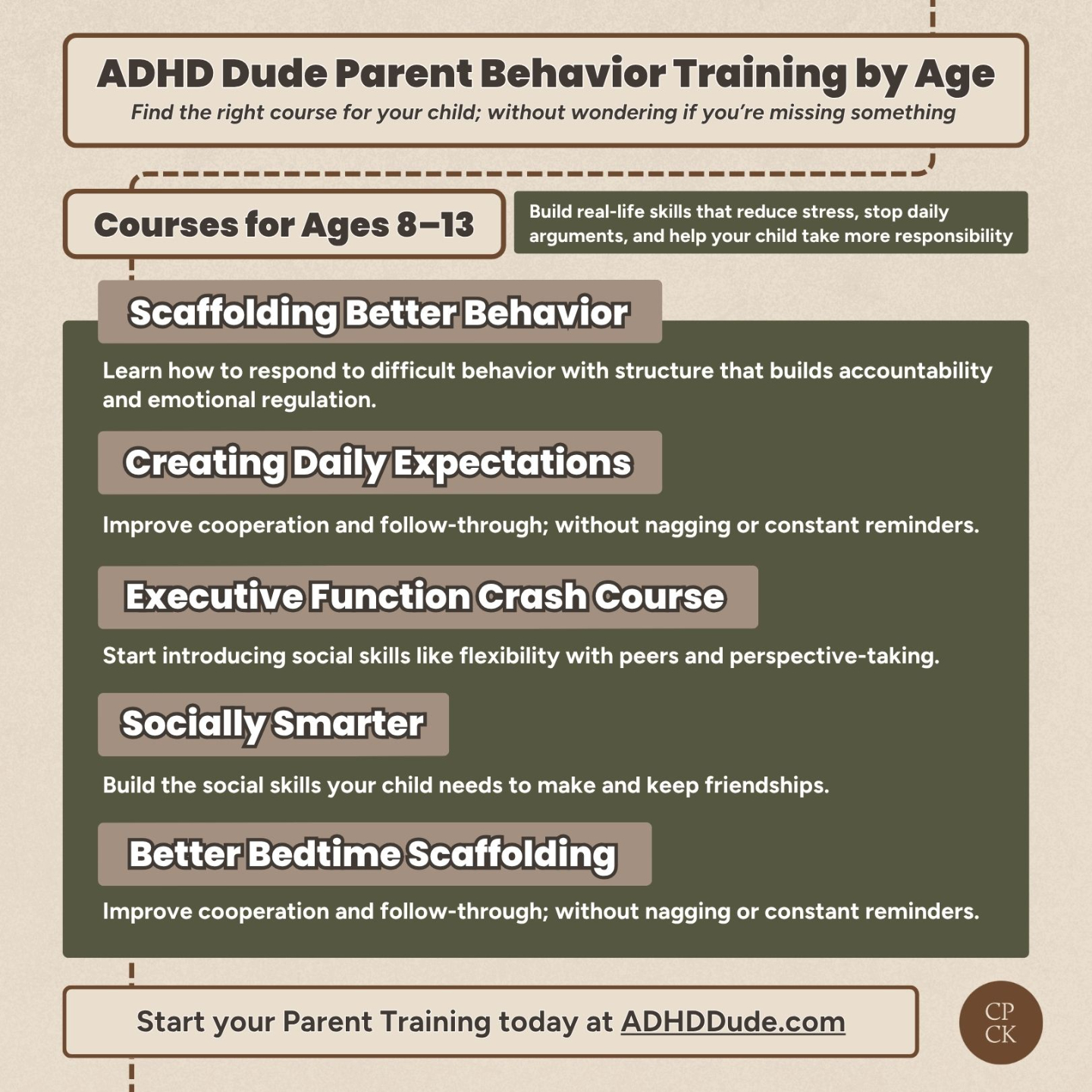 I created ADHD Dude to give parents clear, evidence-informed tools that improve behavior, cooperation, emotional regulation, executive functioning, and social skills.